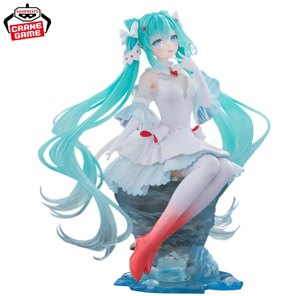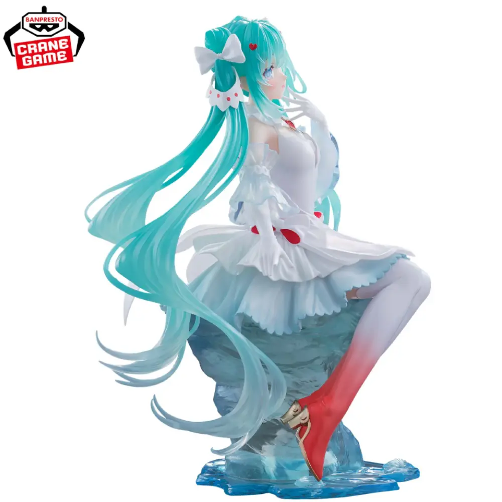 Hatsune Miku Clione Figur als 25 cm Clearluxe Evolve-Figur von Banpresto. Ätherisches weißes Kleid inspiriert von Sea Angels. Aquatische Eleganz!