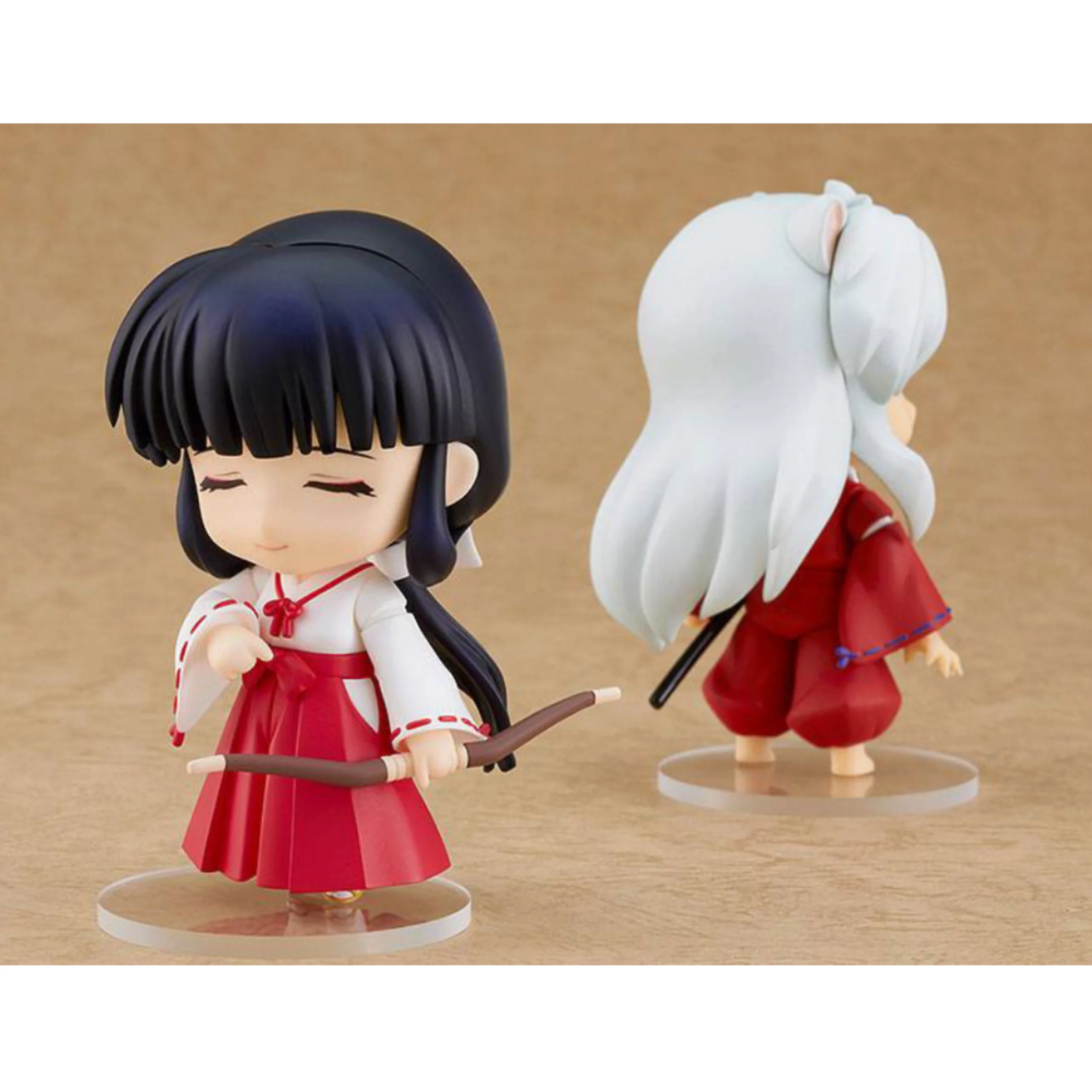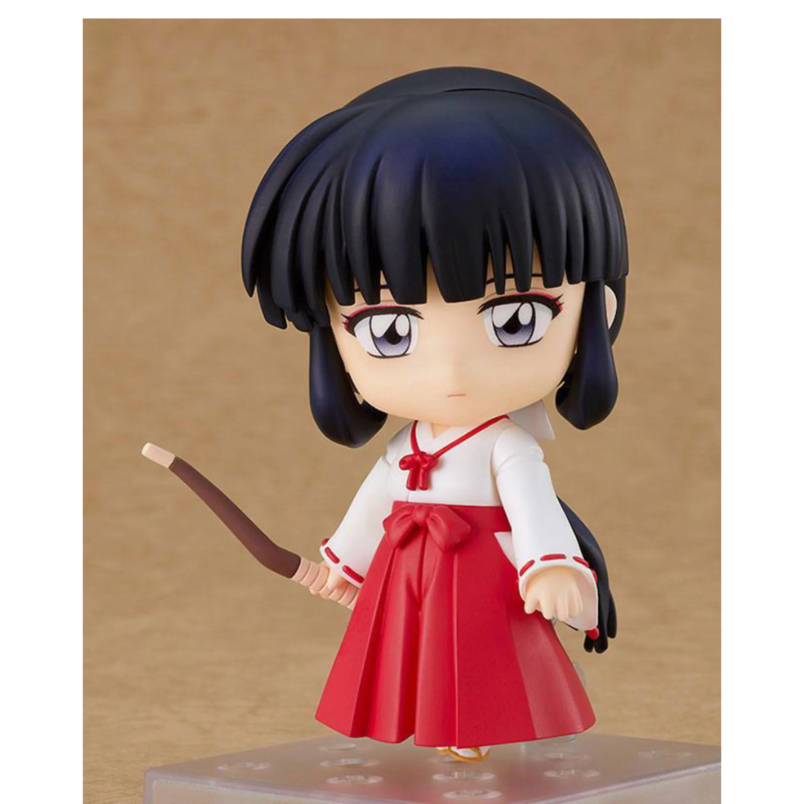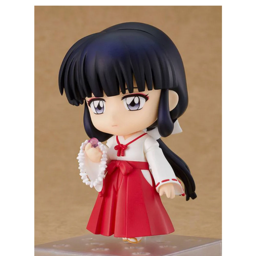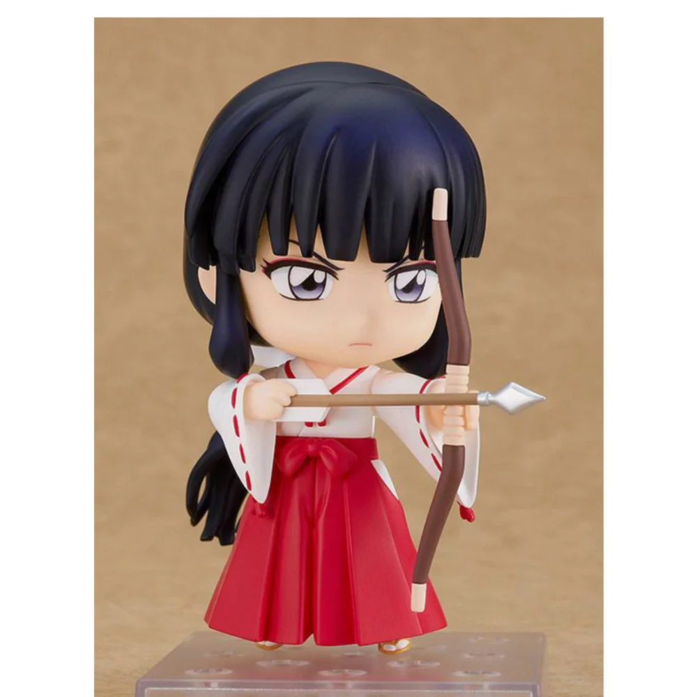 Die ca. 10 cm große Kikyo Nendoroid zeigt sie in ihrem traditionellen roten und weißen Miko-Gewand mit ihrem charakteristischen Bogen und Köcher. Sie enthält mehrere austauschbare Gesichtsausdrücke – darunter ihr ernster Blick und ihr sanftes Lächeln – sowie austauschbare Hände und Pfeilzubehör.