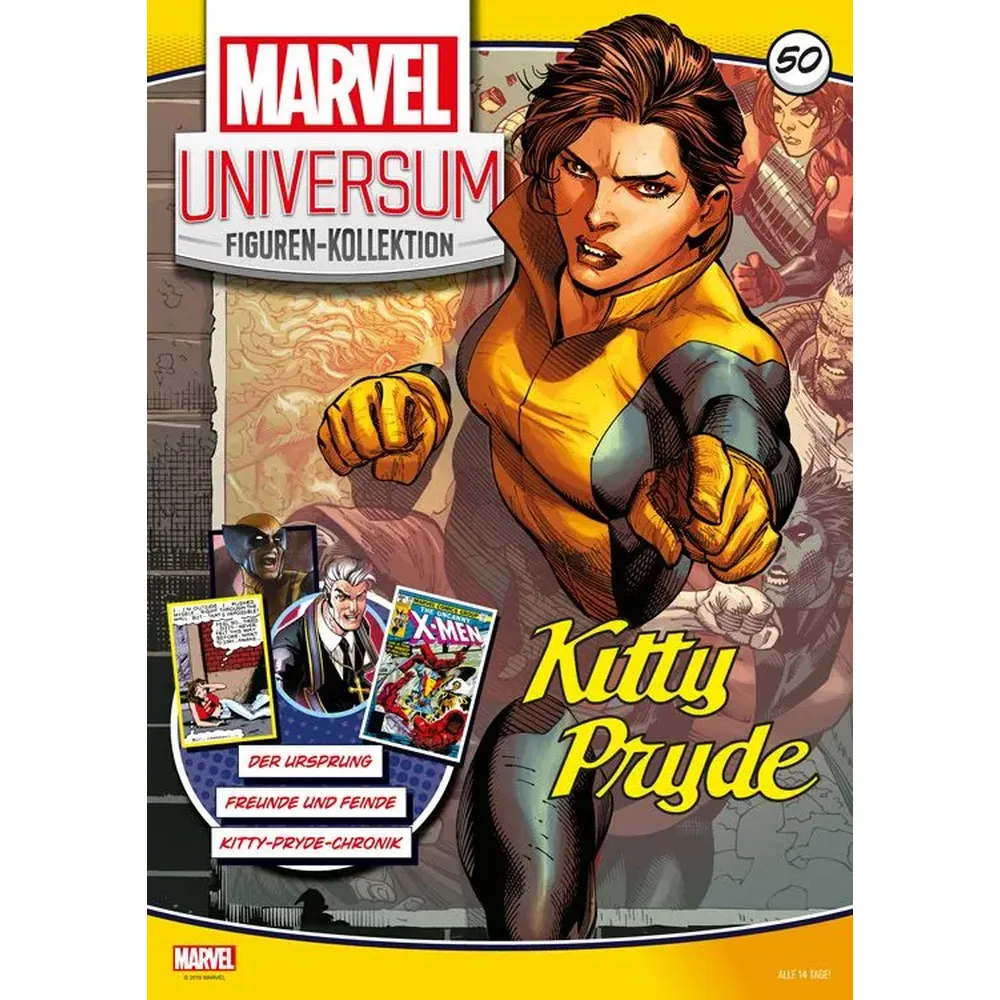 Neben der detailreichen Figur enthält diese Ausgabe ein umfangreiches Magazin mit Hintergrundinformationen zu Kitty Pryde: von ihrer Herkunftsgeschichte und Entwicklung über ihre Kräfte und Ausrüstung bis hin zu ihren Kostümen, Verbündeten und Gegnern.