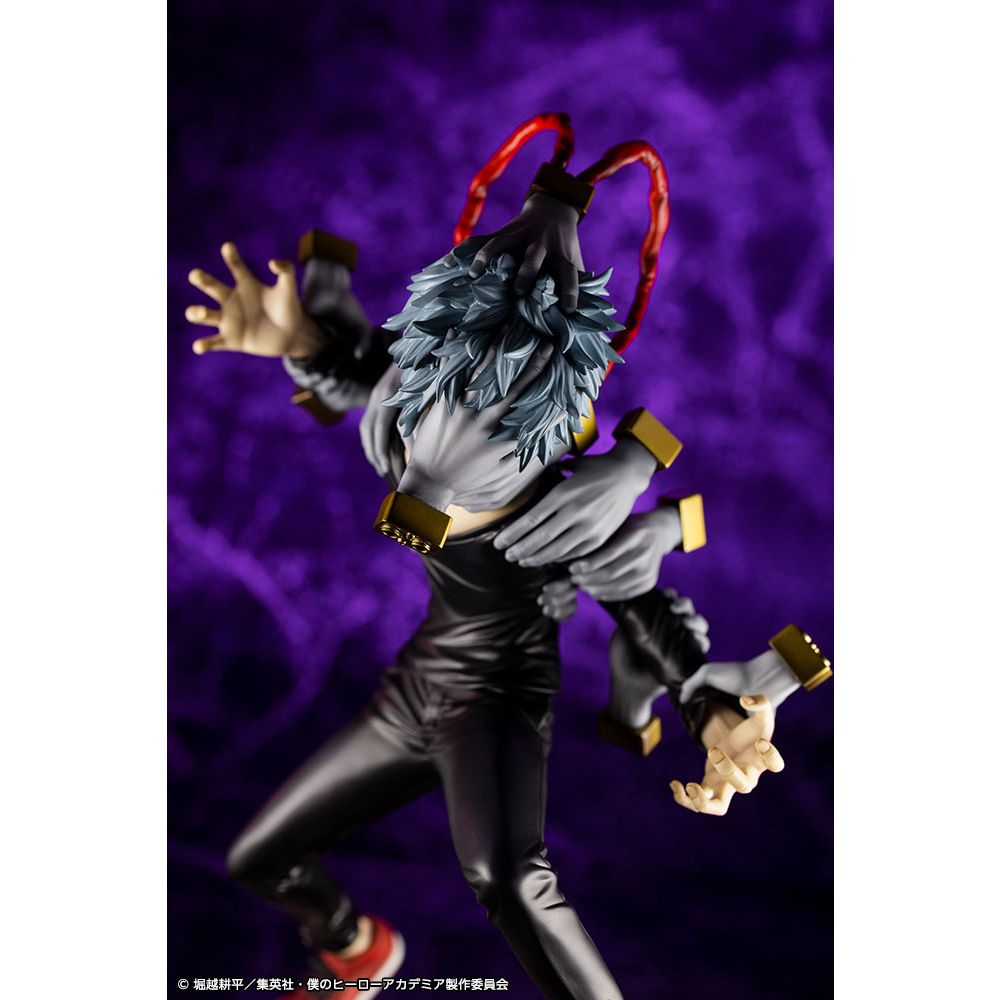 Aus der hochwertigen ARTFX J-Reihe von Kotobukiya kommt diese detailreiche 1/8 Scale Figur von Tomura Shigaraki aus My Hero Academia. Die ca. 23 cm große PVC-Figur zeigt den Anführer der Liga der Schurken in seiner bedrohlichen Pose, umgeben von den markanten Händen seines Kostüms.