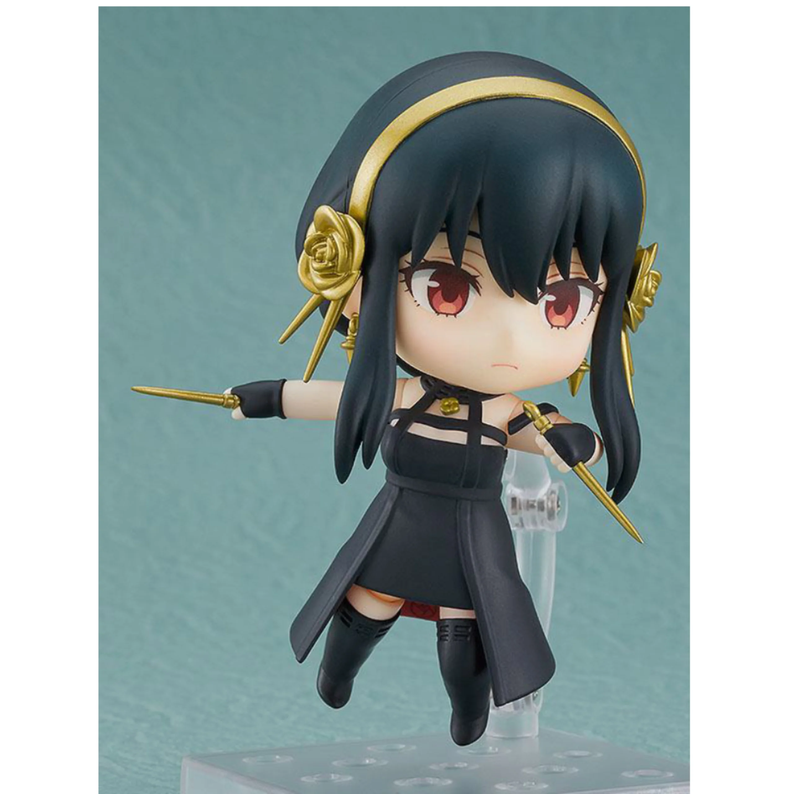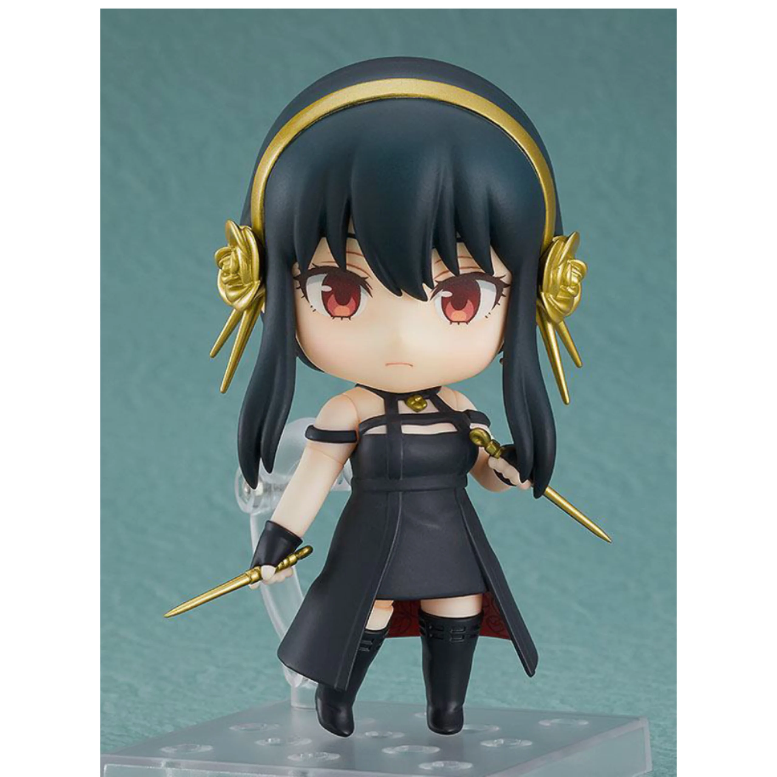 Die ca. 10 cm große PVC-Figur zeigt Yor in ihrem schwarzen Attentäter-Outfit mit goldenen Accessoires und den charakteristischen roten Augen. Sie enthält mehrere austauschbare Gesichtsteile – von charmant lächelnd bis hin zu entschlossen im Kampf – sowie Waffen wie ihre ikonischen Nadeldolche.
