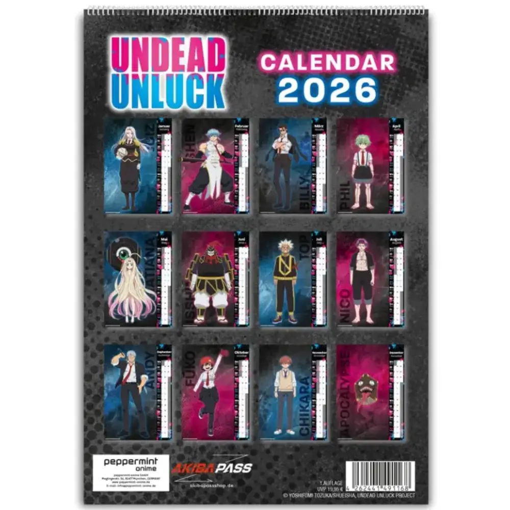 Der offizielle Undead Unluck Wandkalender 2026 zeigt 12 knallige Monatsmotive voller Action – ideal für Fans der beliebten Anime- und Mangaserie.
